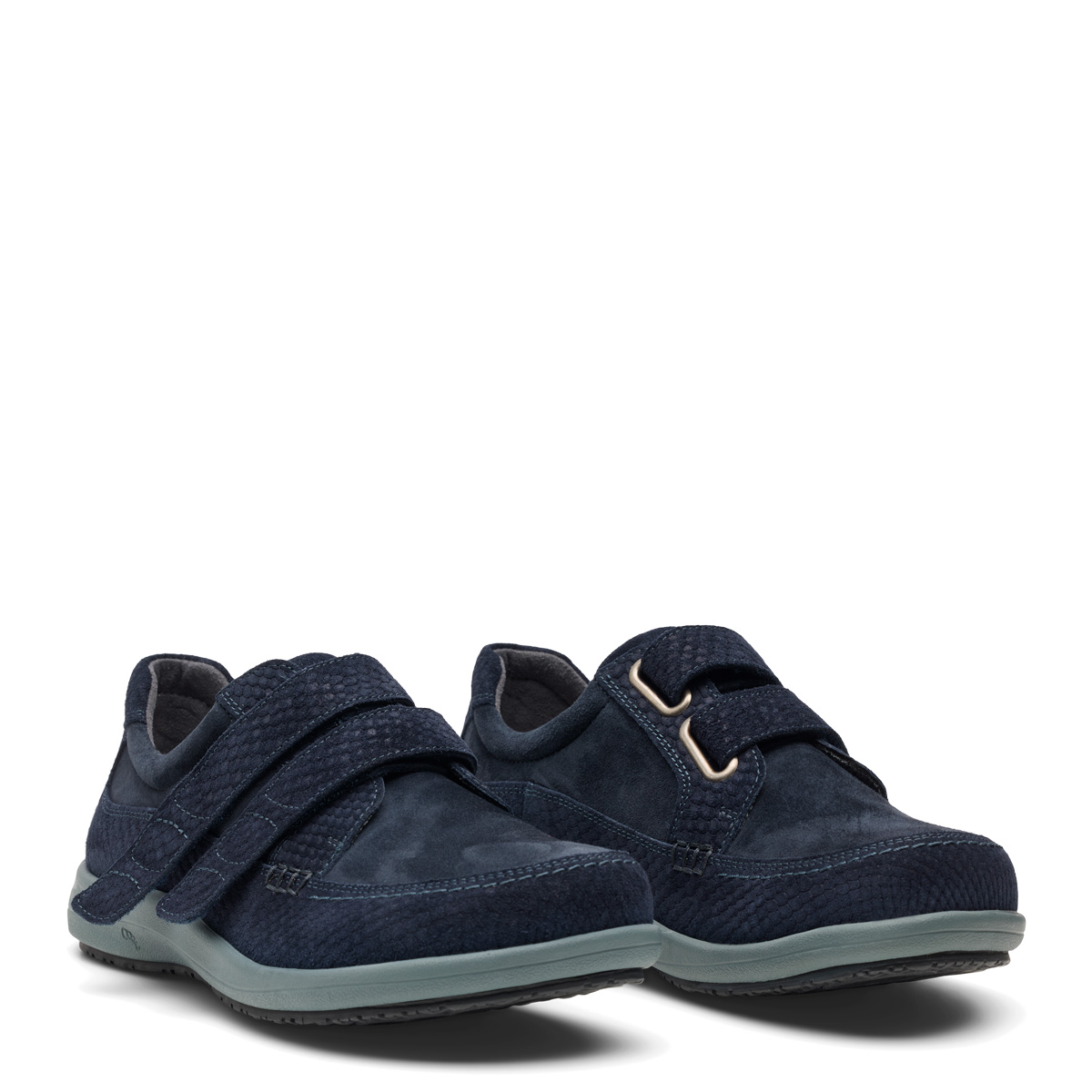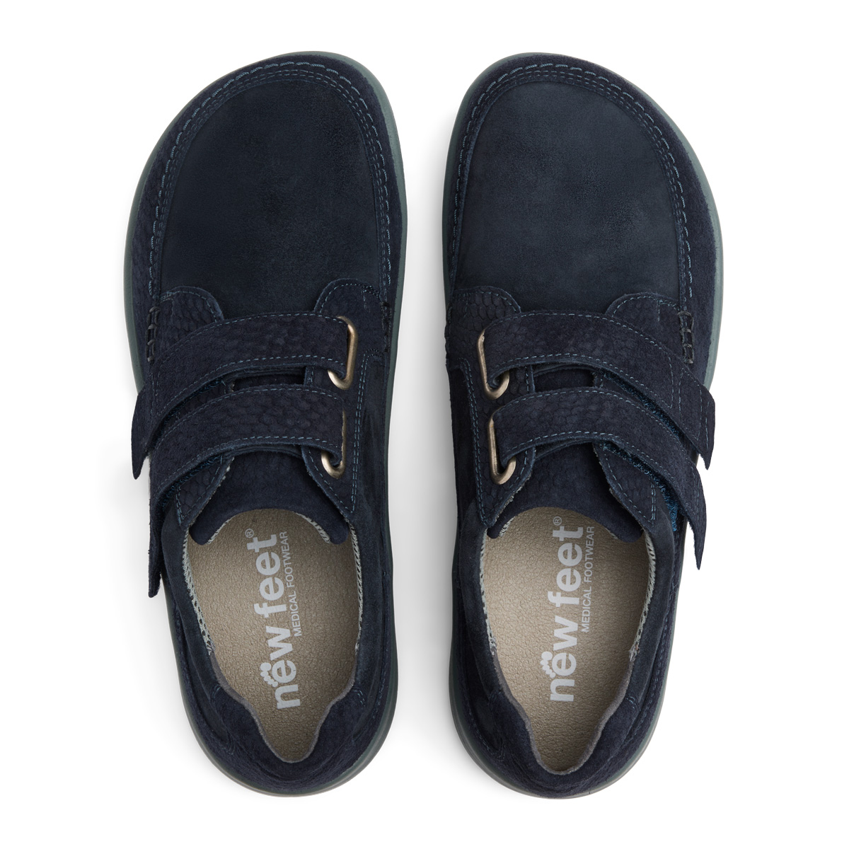 - Ensfarvet læder med OrthoStretch®, sort / Læder med struktur/print, blå
